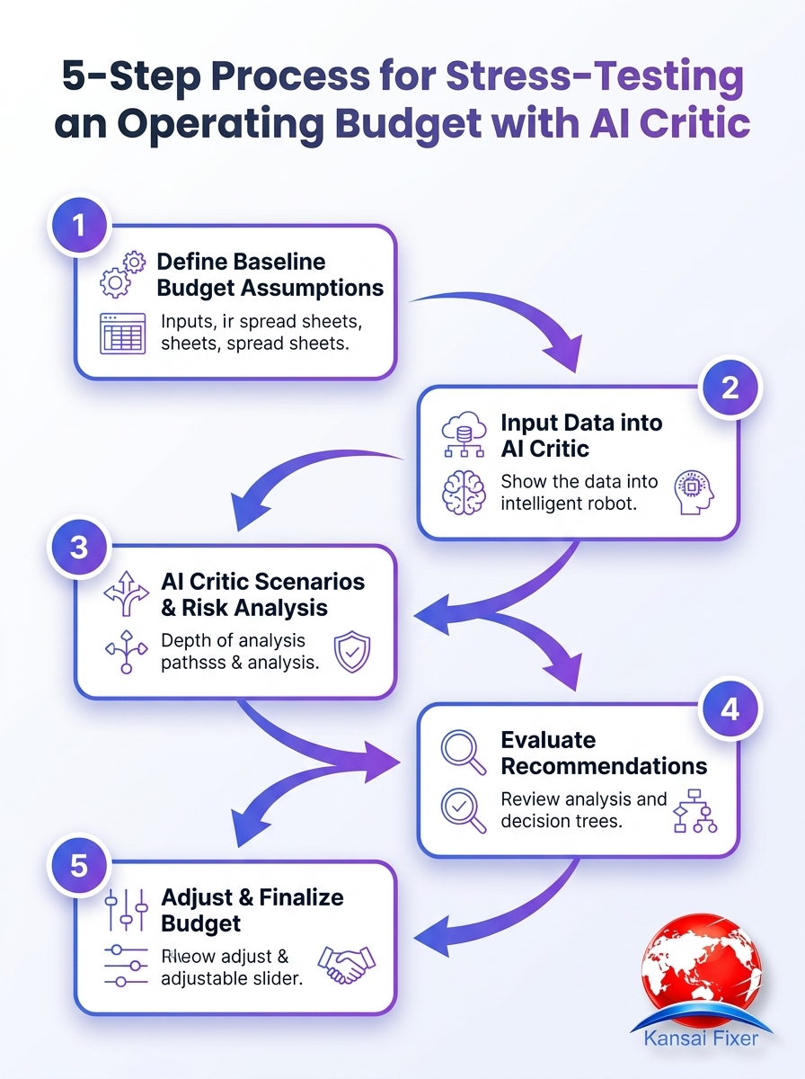 A concise 5-step guide to stress-testing an operating budget with the AI Critic. Visualizes scenarios, risks, and budget optimization opportunities.